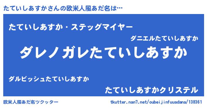 | 意味不明あだ名 | 『住所不定無職たていしあすか(56歳)』 |