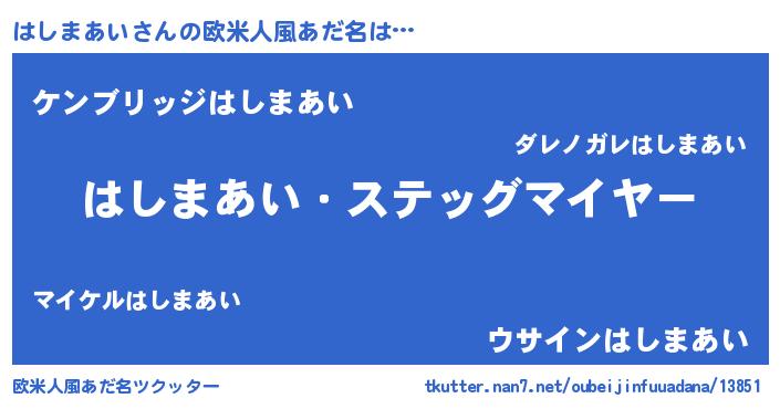 | ヒーロー風カッコイイあだ名 | 『ウルトラ戦士ハシマアイ』 |