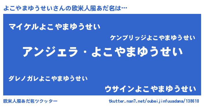 | 男性向けラノベタイトル風あだ名 | 『よこやまゆうせいに滅ぼされるだけの簡単なお仕事です』 |