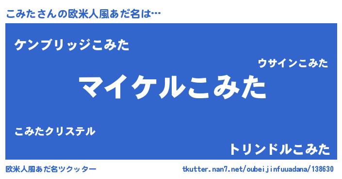 | 男性向けラノベタイトル風あだ名 | 『こみたの憂鬱』 |