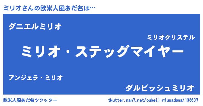 | ヘコむあだ名 | 『ミリオ(小並感)』『なまこ酢』 |