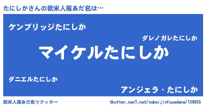 | 男性向けラノベタイトル風あだ名 | 『タニシカアートオンライン』 |