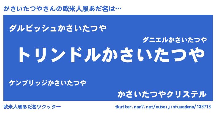 | 男性向けラノベタイトル風あだ名 | 『かさいたつや~年齢イコール彼女いない歴の魔法使い~』 |