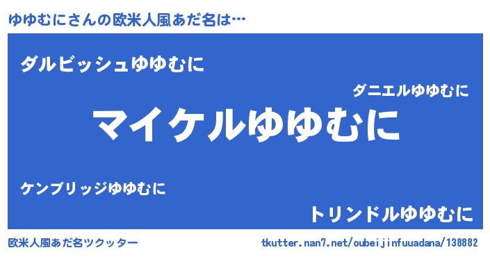 | 男性向けラノベタイトル風あだ名 | 『ユユムニアートオンライン』 |