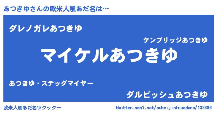 | 男性向けラノベタイトル風あだ名 | 『あつきゆの憂鬱』『魔弾の王とあつきゆ』 |