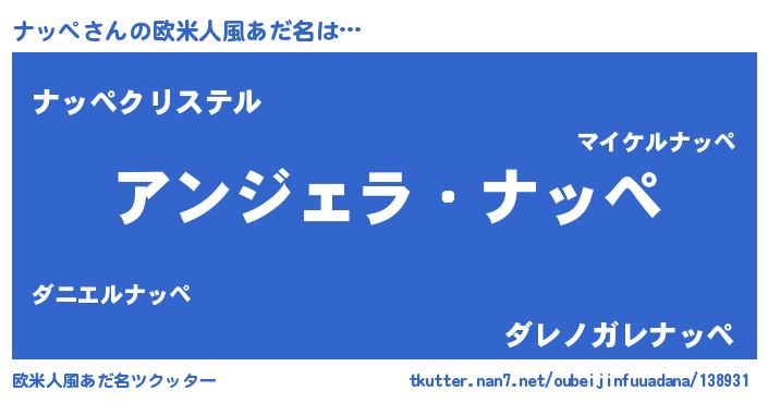 | 男性向けラノベタイトル風あだ名 | 『はたらくナッペさま!』『ナッペの憂鬱』 |