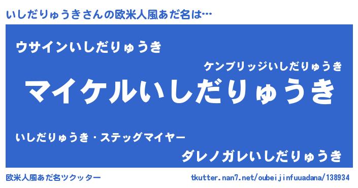| ヒーロー風カッコイイあだ名 | 『スーパーイシダリュウキ』 |