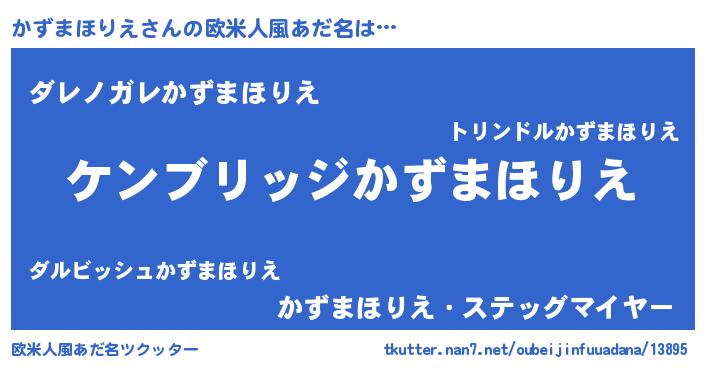| 女子向けラノベタイトル風あだ名 | 『かずまほりえなんてお断りですっ。』 |
