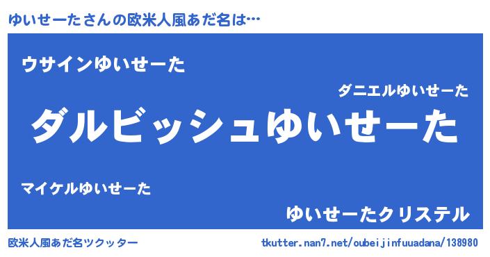 | 女子向けラノベタイトル風あだ名 | 『異世界で失敗しない100のゆいせーた』 |