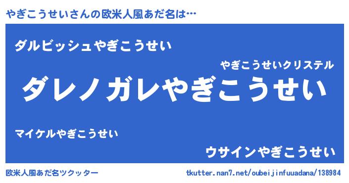 | 男性向けラノベタイトル風あだ名 | 『この素晴らしい世界にやぎこうせいを!』 |