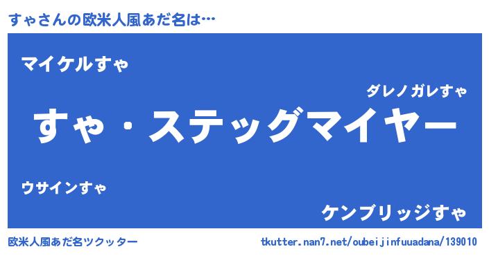 | 男性向けラノベタイトル風あだ名 | 『冴えないすゃの育てかた』『すゃの憂鬱』 |