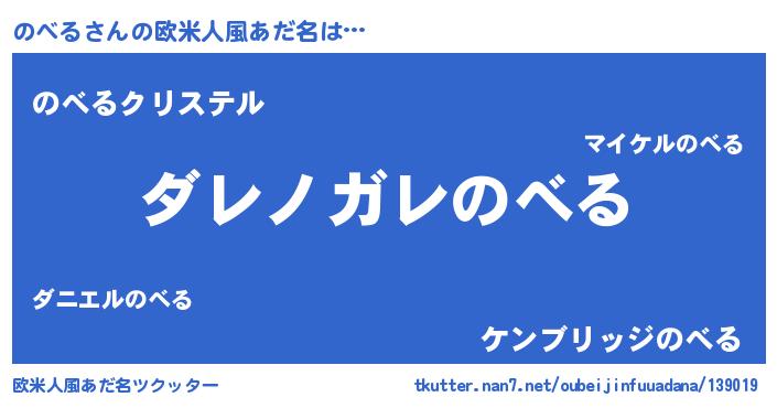 | 男性向けラノベタイトル風あだ名 | 『この素晴らしい世界にのべるを!』 |
