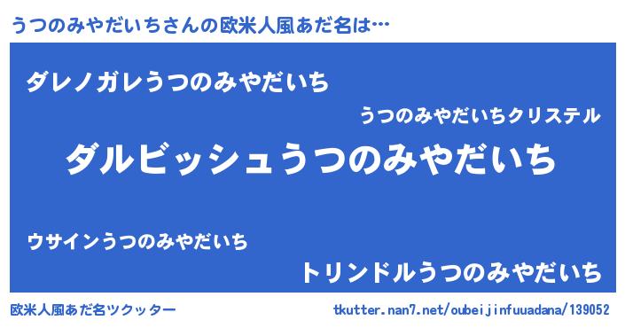 | ヒーロー風カッコイイあだ名 | 『ネオウツノミヤダイチ』『仮面ウツダー』 |