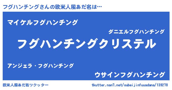| 自動車の名前っぽいあだ名 | 『フクア』『フグティマ』『フィッフ』 |