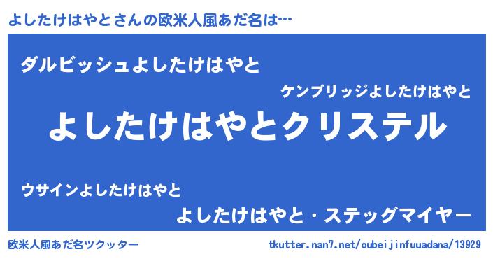 | 意味不明あだ名 | 『よしたけはやとフォーエバー』 |