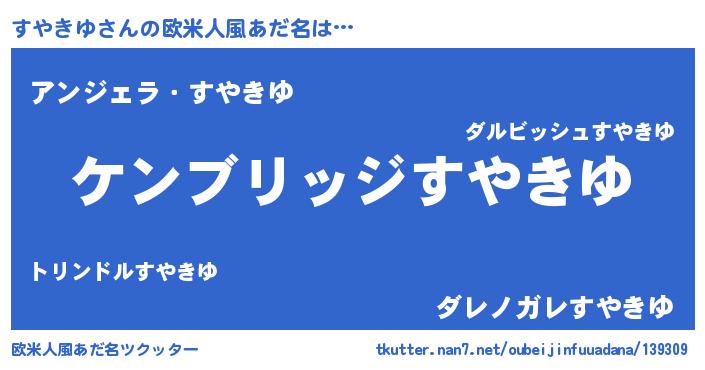 | 意味不明あだ名 | 『自称すやきゆ』『永久保存すやきゆ』 |