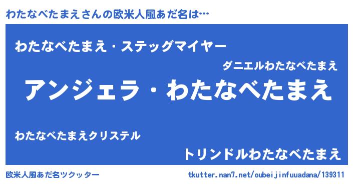 | ヘコむあだ名 | 『牛乳』『わたふぇ~』『わたっぺ』 |