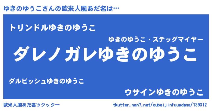 | ヘコむあだ名 | 『ゆきぷりん』『ゆきのゆうこ(苦笑)』 |