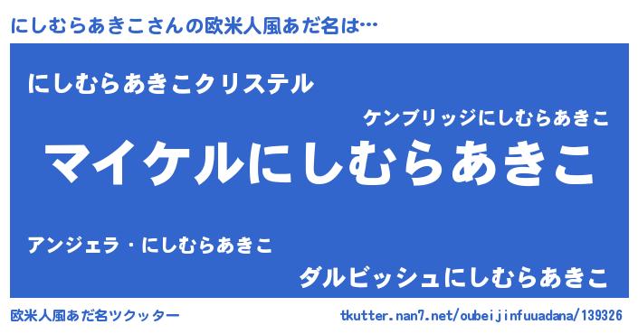 | 男性向けラノベタイトル風あだ名 | 『ニシムラアキコアートオンライン』 |