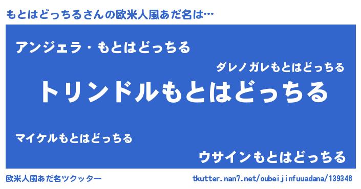 | 男性向けラノベタイトル風あだ名 | 『もとはどっちる~年齢イコール彼女いない歴の魔法使い~』 |