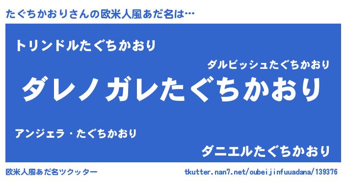 | ヘコむあだ名 | 『たぐちかおり(笑)』『たぐお』 |