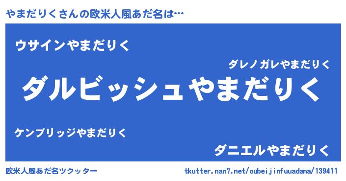 | 女子向けラノベタイトル風あだ名 | 『異世界で失敗しない100のやまだりく』 |