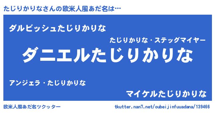 | ヘコむあだ名 | 『たじりかりな(爆)』『たじっふぃ~』 |