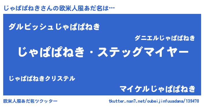 | 意味不明あだ名 | 『永久保存じゃぱぱねき』 |