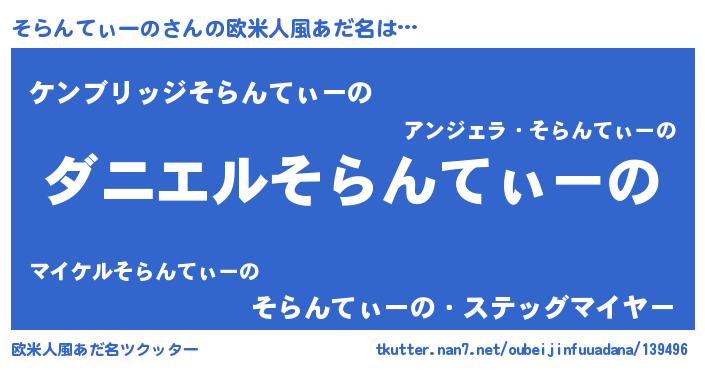 | 女子向けラノベタイトル風あだ名 | 『そらんてぃーの恋絵巻』 |