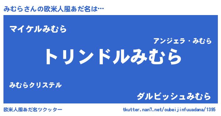 | 男性向けラノベタイトル風あだ名 | 『みむら~年齢イコール彼女いない歴の魔法使い~』 |