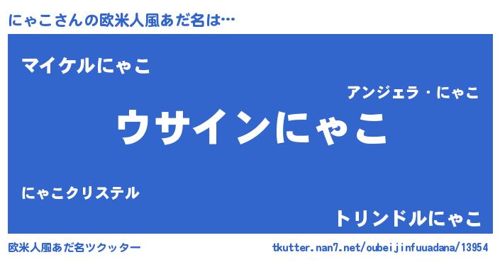 | 男性向けラノベタイトル風あだ名 | 『にゃこの嫁は女の子じゃないと思った?』 |