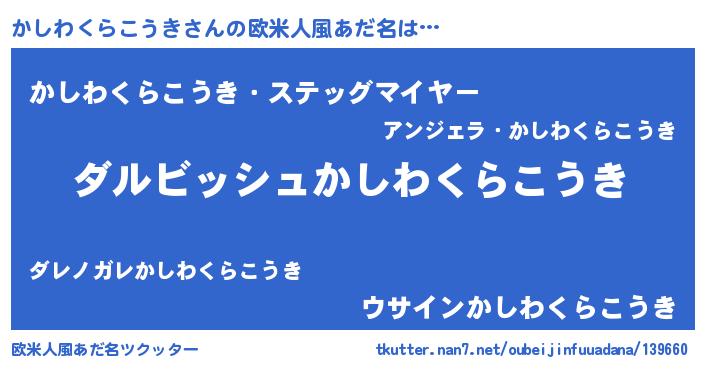 | ヘコむあだ名 | 『かしわくらこうき(笑)』『かしお』 |