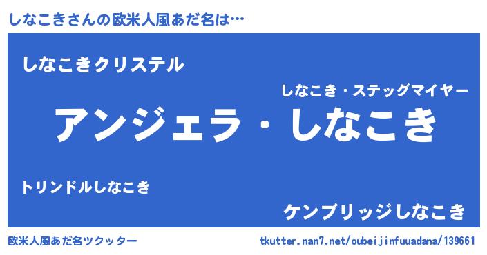 | 男性向けラノベタイトル風あだ名 | 『はたらくしなこきさま!』 |
