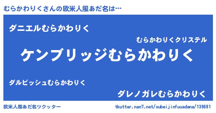 | 意味不明あだ名 | 『自称むらかわりく』 |