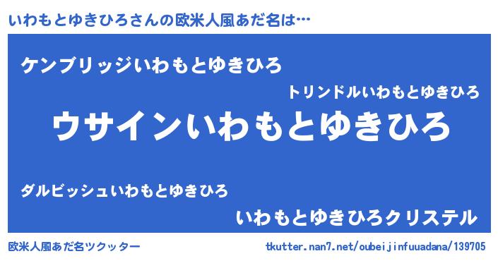 | 男性向けラノベタイトル風あだ名 | 『ダンジョンにいわもとゆきひろを求めるのは間違っているだろうか』 |
