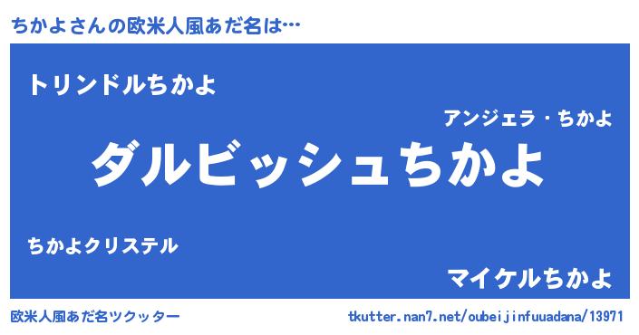 | ヒーロー風カッコイイあだ名 | 『ネオチカヨ』『スーパーチカヨ』 |
