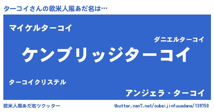 | 女子向けラノベタイトル風あだ名 | 『闇のターコイ』『死神ターコイの再婚』 |