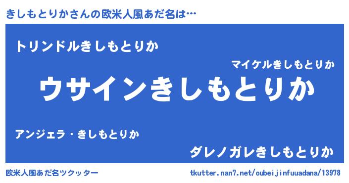 | 男性向けラノベタイトル風あだ名 | 『ダンジョンにきしもとりかを求めるのは間違っているだろうか』 |