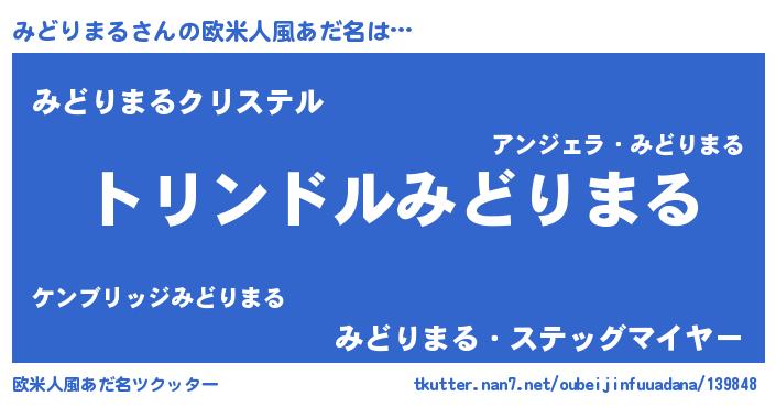 | 女子向けラノベタイトル風あだ名 | 『みどりまるの玉の輿計画!』 |