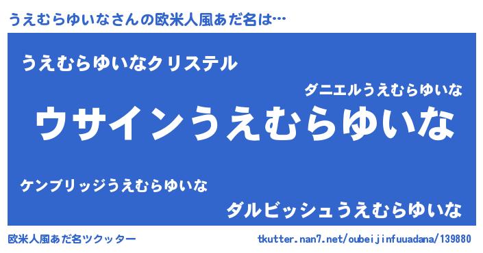 | ポケモン風あだ名 | 『ヒウエムラユイナ』『ウエムダネ』 |