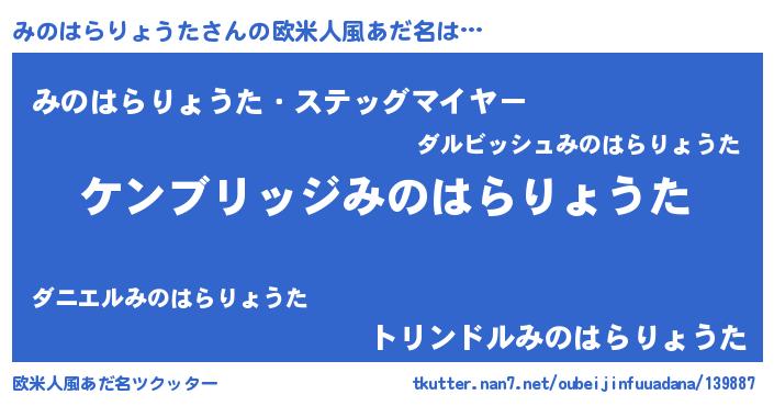 | 男性向けラノベタイトル風あだ名 | 『魔法科高校のみのはらりょうた』 |