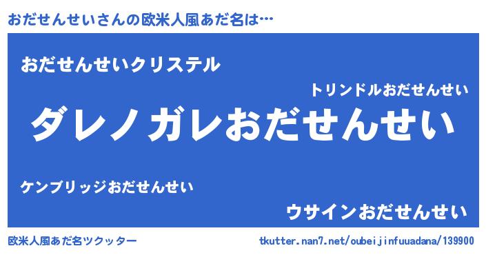 | 男性向けラノベタイトル風あだ名 | 『この素晴らしい世界におだせんせいを!』 |
