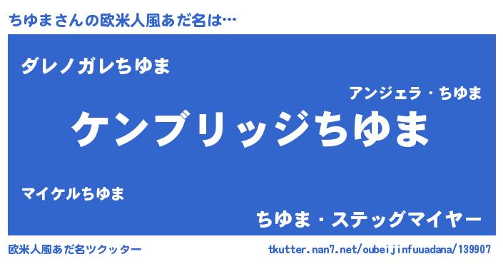 | 男性向けラノベタイトル風あだ名 | 『Re:ちゆまから始める異世界生活』 |