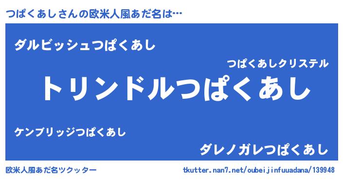 | 男性向けラノベタイトル風あだ名 | 『転生したらつぱくあしだった件』 |