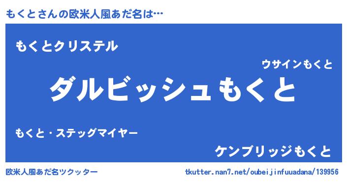 | ヘコむあだ名 | 『もくと(笑)』『レバニラ』『もくお』 |