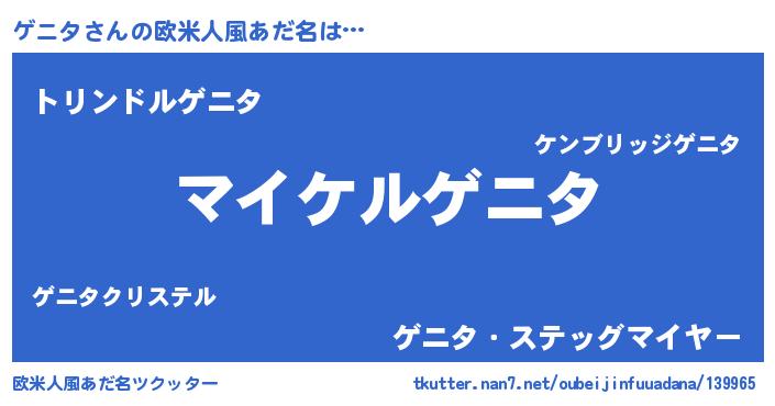 | ヒーロー風カッコイイあだ名 | 『スーパーゲニタ』『サイバー戦士ゲニタ』 |