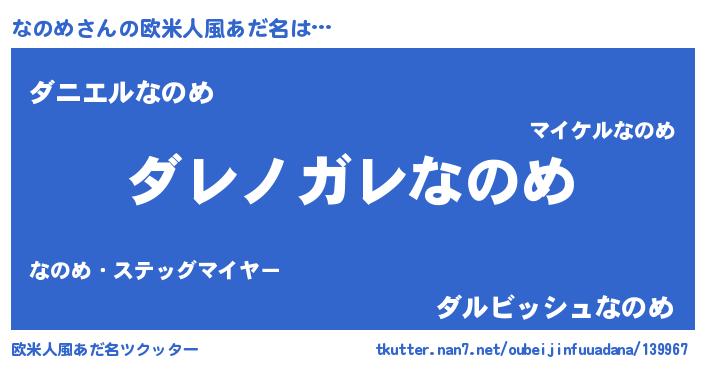 | ヒーロー風カッコイイあだ名 | 『仮面ナノダー』『正義の使者なのめ』 |