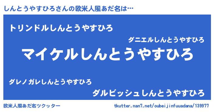 | 男性向けラノベタイトル風あだ名 | 『しんとうやすひろの憂鬱』 |