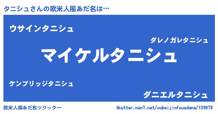 | 男性向けラノベタイトル風あだ名 | 『タニシュアートオンライン』 |