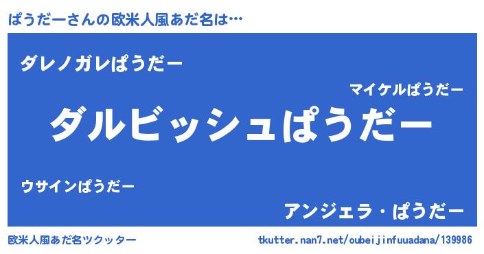 | 女子向けラノベタイトル風あだ名 | 『異世界で失敗しない100のぱうだー』 |